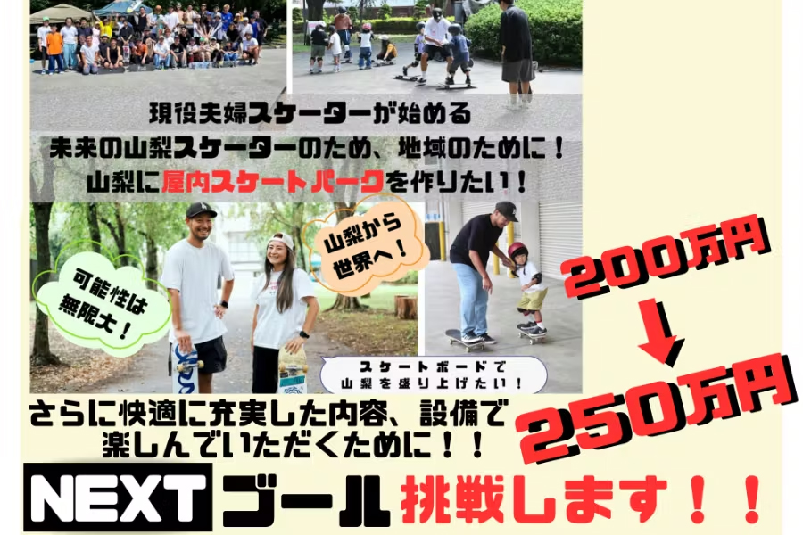 山梨に、子どもから大人まで、天候に左右されずに楽しめる屋内スケートボードパークをつくるプロジェクトが進んでいます。