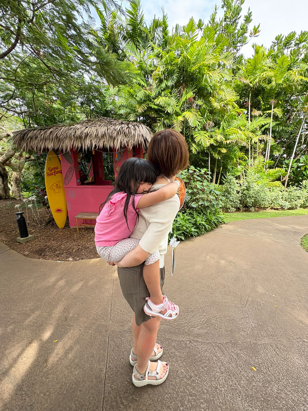 湿度高めの南国で4歳を背負って歩く。
