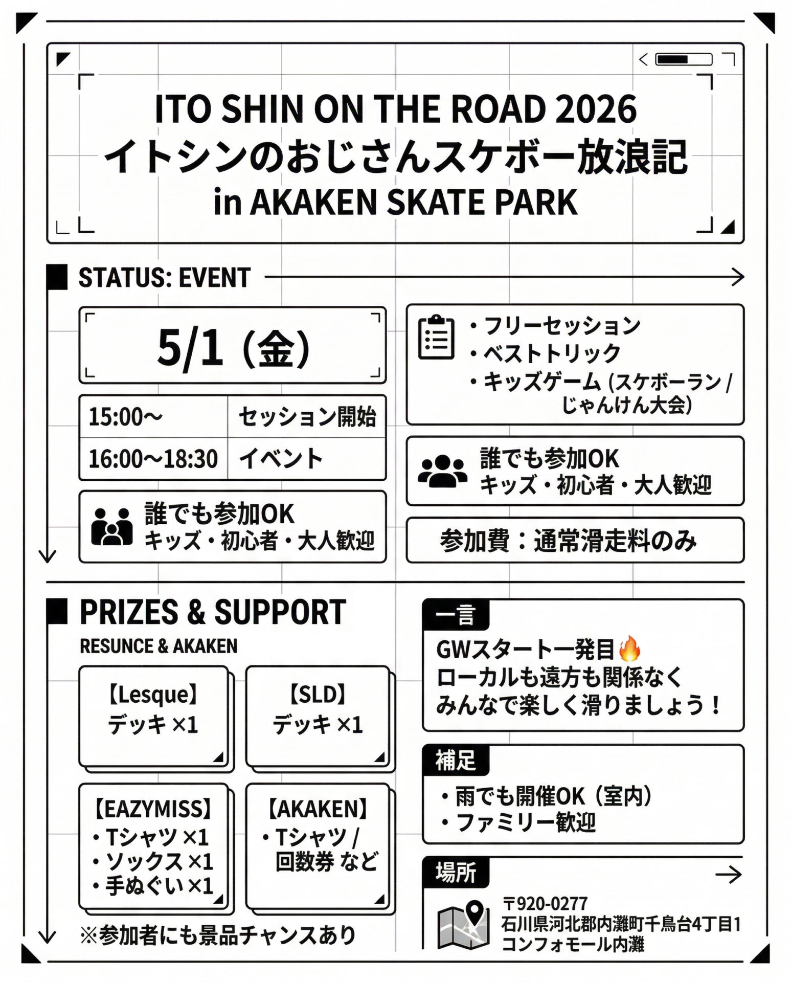 石川県・AKAKEN SKATE PARKでイベント開催が決まりました🔥
